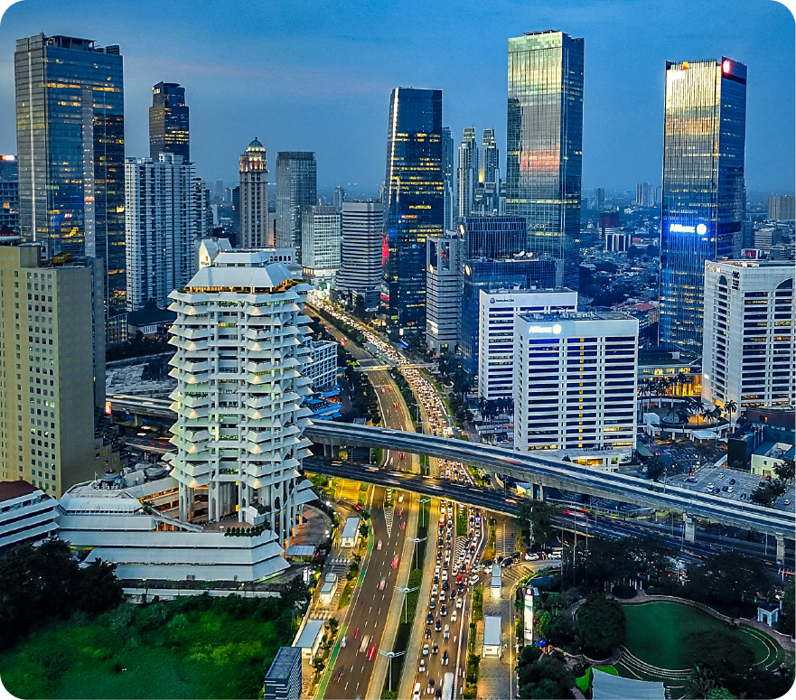 Jalan Jenderal Sudirman is a prestigious and vibrant commercial and financial hub in Jakarta, Indonesia, known for its modern skyline, corporate offices, and dynamic business environment.